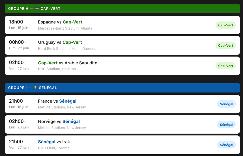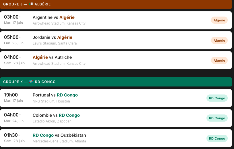 🌍 Équipes africaines — Coupe du monde 2026